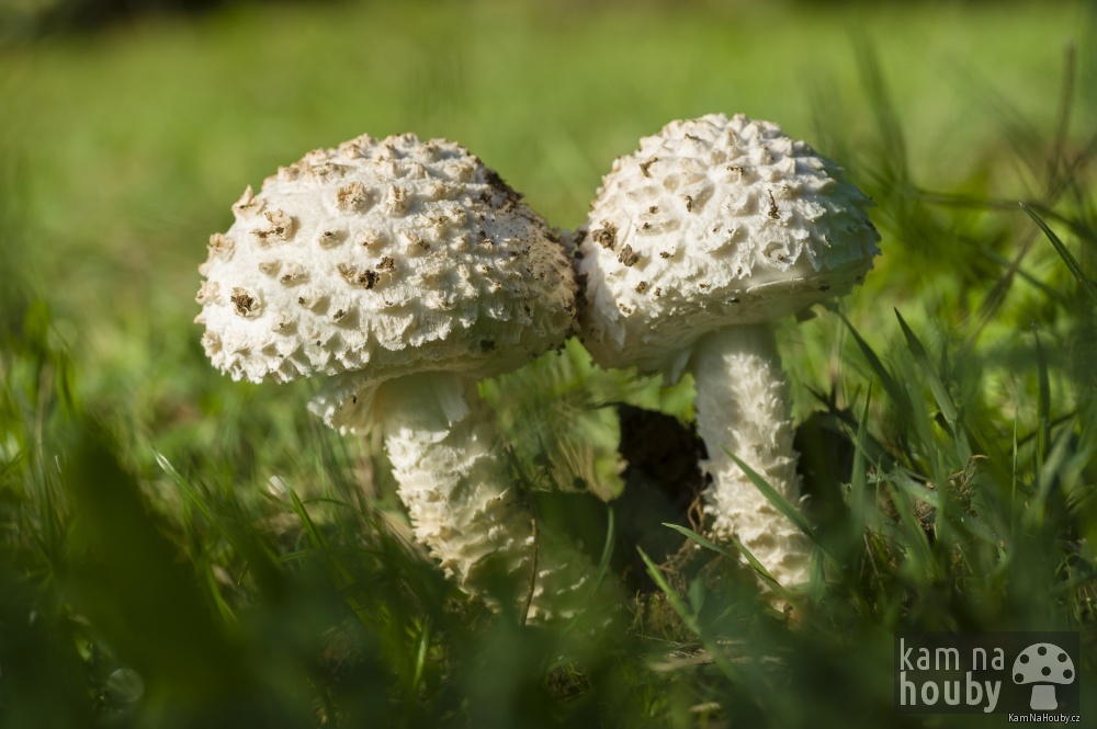 Klobouk je 50-180 mm široký, nejprve polokulovitý, později klenutý, až celkem plochý, uprostřed často s hrbolem. Bývá bělavý nebo krémový, v dospělosti místy okrový, až hnědavý, šedohnědě bradavičnatě šupinatý, ve stáří částečně nebo téměř celý holý.